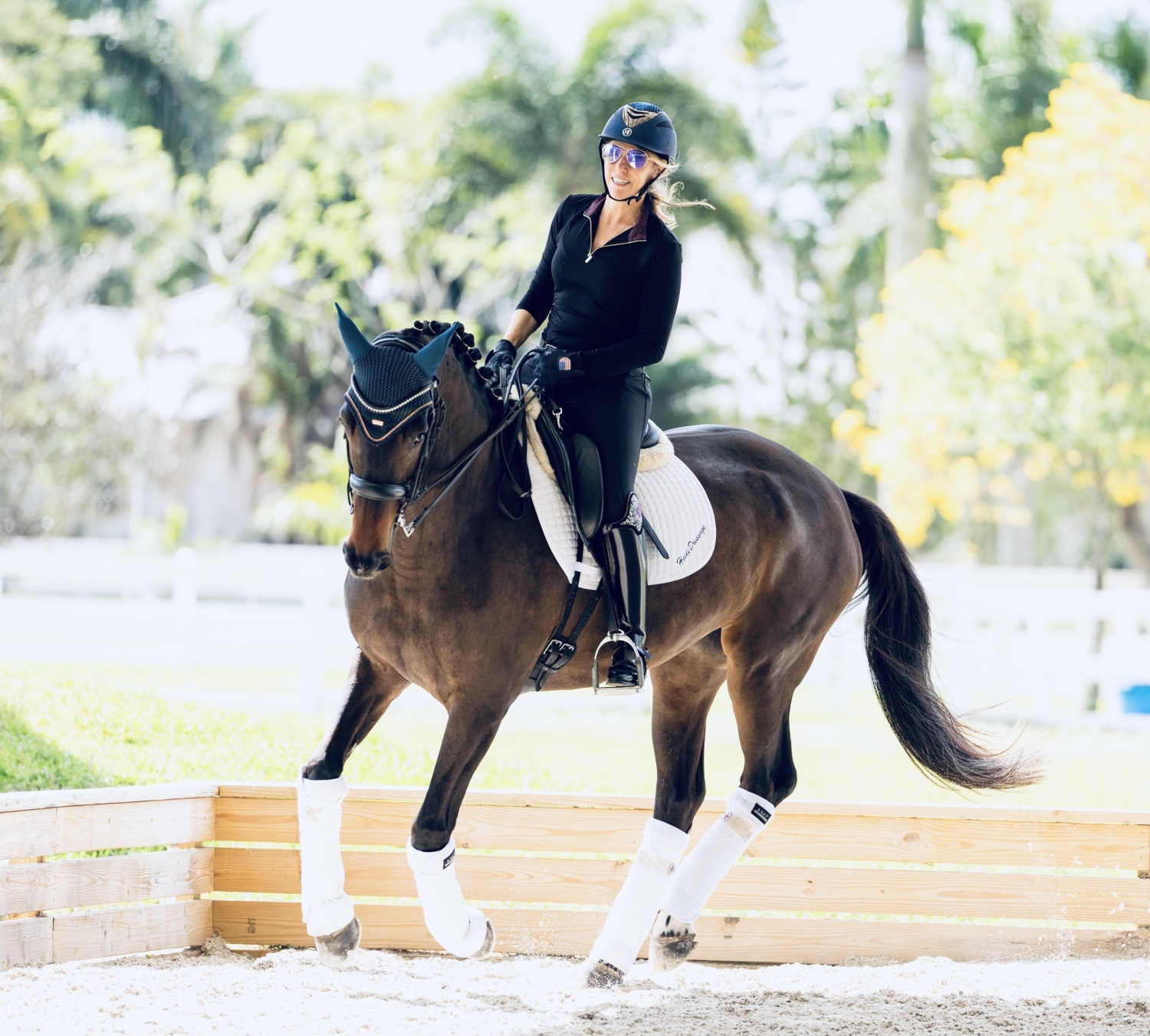 She is responsive off the leg with easy, confirmed flying changes, and has already proven herself through Fourth Level with consistent mid-60s scores. In the barn, she is exceptionally sweet and a joy to work around, with a solid foundation from top professionals.